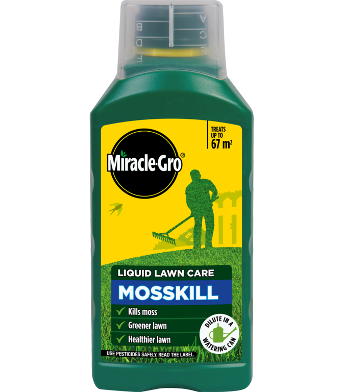 Miracle-Gro® Mosskill Liquid guarantees a greener lawn in 3 days.