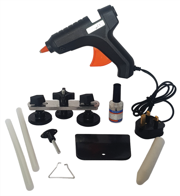 For removing minor dents from the body work of cars, vans and motorcycles. Works on both flat panels such as doors and roof as well as curved panels like the wing or valance part of the vehicle.
